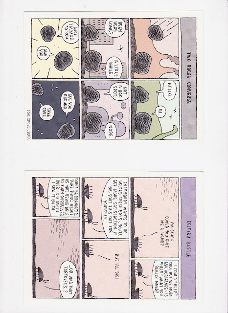 I came across Tom Gauld's illustrations at the Artists' Book Fair last December and so it was interesting to see someone i recognised at yesterday's exhibition. I particularly like Gauld's ability to tell a story through such simple illustrations and minimal use of text. Also i am amazed by his perfect handwriting, i bought a copy of his A5 Postcards at the book fair and he signed them for me but it's so neat it looks like it was just printed on there. He definately doesn't have a doctors signature!!
